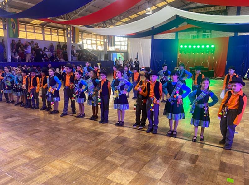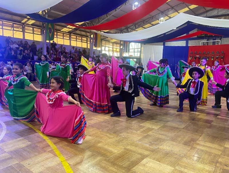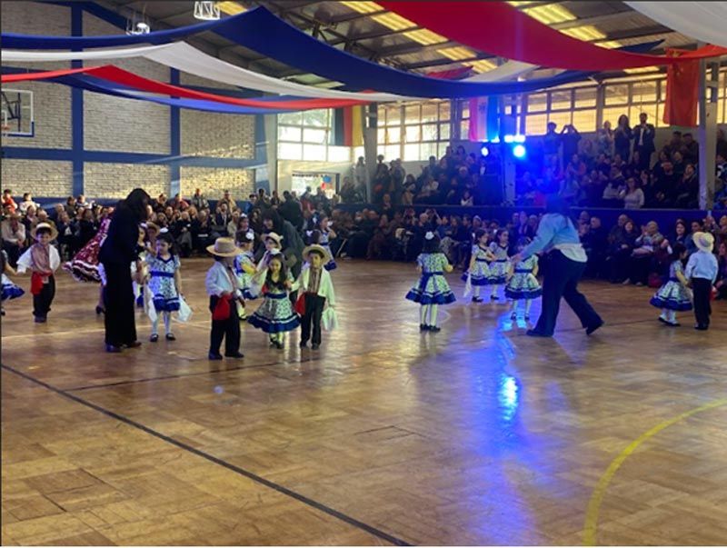 Este evento reunió a estudiantes, apoderados, docentes y personal de todas nuestras sedes, desde Prekínder hasta 4° Medio, en una verdadera fiesta de unidad y multiculturalidad. Nuestra muestra incluyó stands con comida típica, que deleitaron a todos con sus sabores tradicionales, y por supuesto, los esperados bailes folclóricos nacionales e internacionales, preparados con esmero por los estudiantes junto a sus profesores de P.E.